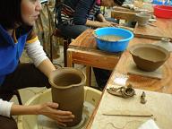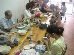 初めて陶芸をされる方を対象に作っています。湯のみ・茶碗など簡単なものからはじめ釉薬や絵の具のちょっとわかりにくいところを勉強します。1年ぐらいでほとんどの人が作ってみたいと思うようなものがすべてできます。これをやりながら自分の好きなものを作ってもOKですし、創造力のある方は、自由に作ってもらってもかまいません。皆さんが自分のペースで楽しんで作陶してください。