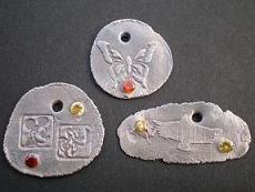 銀粘土を使って、ペンダントやアクセサリーを作るコースです。いろいろ考えてオリジナルの形を作ってください。わからないところがあれば、お手伝いさせていただきます。
