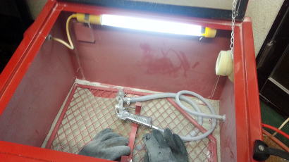 こんな機械で吹き付けます。簡単です。その場で出来、持ち帰れます。