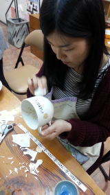 簡単にいいものを作りたいという方にピッタリ!お皿、マグカップ、お茶碗など数十種類から好きな土台を1つ選んで作ります。そしてその上に転写シールを4カット切って細かくして張っていきます。何回でも張り直しもできます。時間があったら追加で数も作れます。初心者の方にもわかりやすく付きっきりでレクチャーいたしますので、どなたでも素敵な作品を作れますよ。まずは体験を通して、上絵の魅力に触れてみてください!透き通るように美しい作品に、心を奪われてしまうはずです。