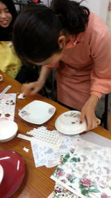 好きな器に100種類の転写紙を張るだけ!楽で簡単。キレイでクオリティの高い器が子供さんから簡単にできます。ポーセリンアートとは「磁器の器」にヨーロッパから輸入した美しい転写紙(絵柄がプリントされたシール。100種類以上あります。)を選んで、水貼りし、800度で焼き付ける食器アートです。作品に貼り付ける転写紙は質も高くとっても綺麗、間違えても何回でも張り直しも可能で、わくわくドキドキ。自分の思うがままのオリジナリティあふれる作品に仕上げてみてください。