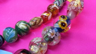2日でとんぼ玉を平均大小30個ほど作れます。100種類あるガラス使い放題。1日目小さなもの中心に2日目大きなものまで作り放題です。ガラスの基本を教えますのでどんどんご自身でお作り下さい。(危険のない範囲で。模様指定アリ、乗せ・点うち)