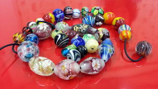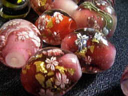 リッチな大人会☆ Cプラン2500円 金箔・銀箔が入り、ゴージャス仕様。 パーツ、ピンクを使います。脇玉付き。 ペンダント紐・ストラップ無料でどちらか付き。 予算があればこのプランを薦めます♪ とんぼ玉大玉1点製作。ネックレスかストラップに組立て付き。時間150分。 模様はなんでもOKです。大人を対象に質を高く金・銀箔・ねじり棒を使います。予算があればこれ。 |