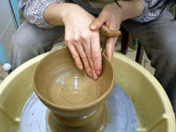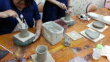 | 手びねりDプラン3000円 手ロクロを使います。 充実プランです♪ 製作時間120分。 好きな形で1点製作。 粘土550gを使用。 土練りから、ろくろの練習をやり、製作は湯呑み・鉢・お皿・抹茶茶碗1点製作。 色や模様も充実してます。ワガママもOKです! |