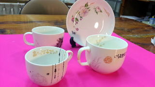 好きな器に100種類の転写紙を張るだけ!楽で簡単。キレイでクオリティの高い器が子供さんから簡単にできます。ポーセリンアートとは「磁器の器」にヨーロッパから輸入した美しい転写紙(絵柄がプリントされたシール。100種類以上あります。)を選んで、水貼りし、800度で焼き付ける食器アートです。作品に貼り付ける転写紙は質も高くとっても綺麗、間違えても何回でも張り直しも可能で、わくわくドキドキ。自分の思うがままのオリジナリティあふれる作品に仕上げてみてください。