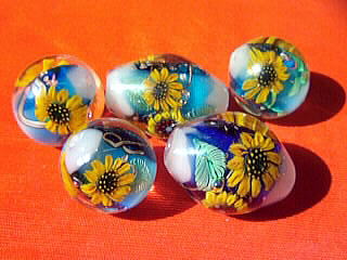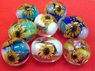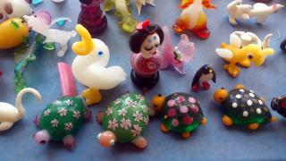 | 子供会などにオススメ! Aプラン1600円 ちよ野の基本。お子様・大人にも向きます。 点うち・マーブル・流しの中から選んで製作。 とんぼ玉1点製作。製作時間120分、模様は3種類限定。お子様を中心に。お手伝いの方必要です。 初めにデモンストレーションをしっかりしますのでガラスを感じていただけます。 組み立て付き。無料ペンダントか金具ストラップ・ペンダントは1個100円になります。 |